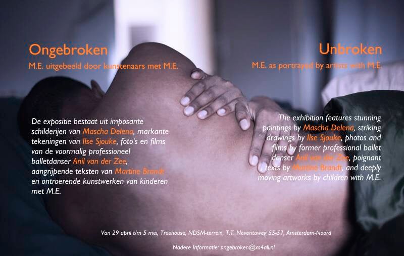 Van 29 april tot en met 5 mei 2026 wordt in het Treehouse op het NDSM-terrein in Amsterdam een unieke expositie gehouden van werk van kunstenaars met M.E. en kinderen met M.E. onder de titel ‘Ongebroken’.